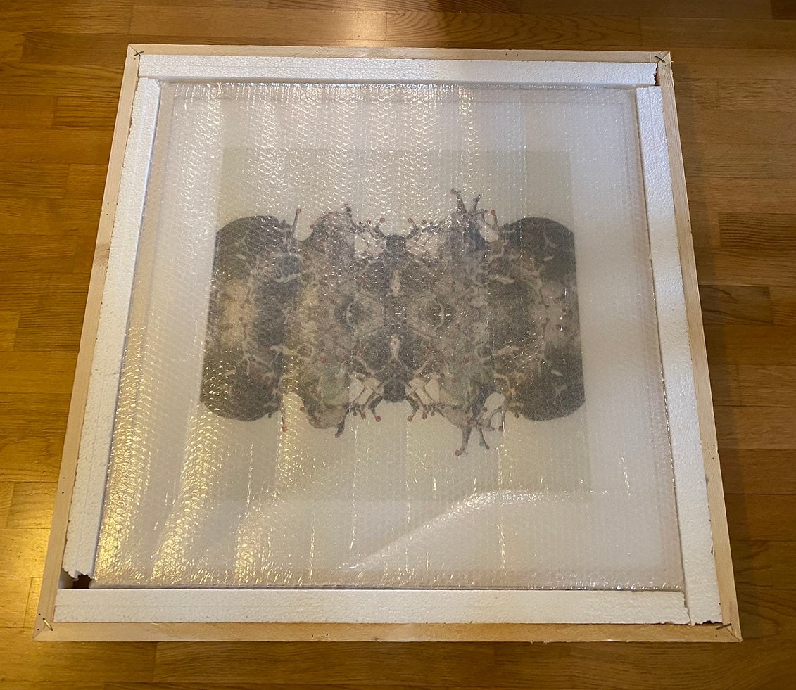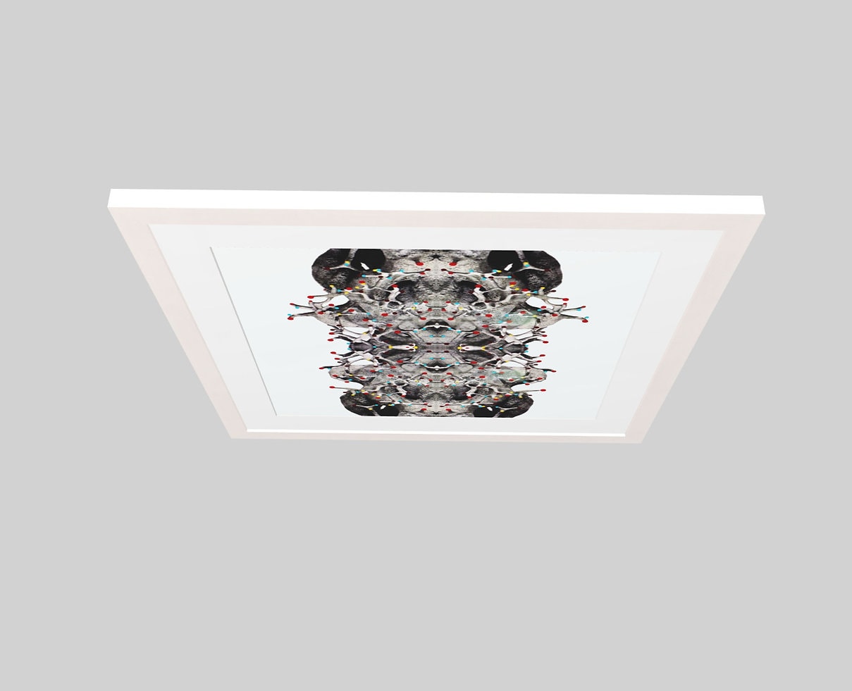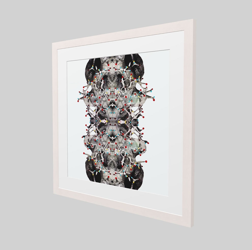 Technique: This artwork was created by taking an anthill aluminium sculpture photograph first, which was then mirrored. The coloured dots were then finally added manually one-by-one digitally.