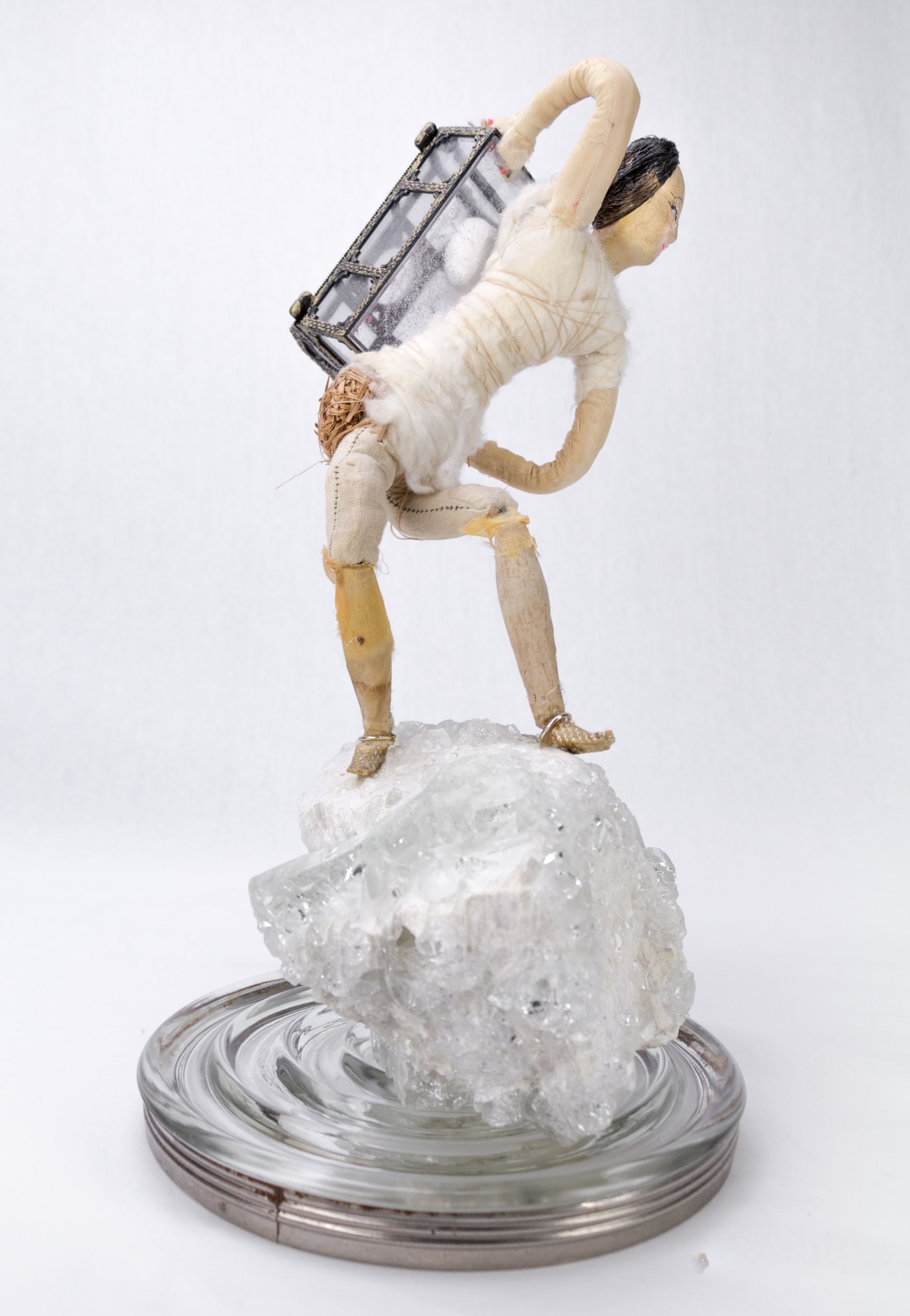 Transported on the back of the Muse, the precious faint whisper of an idea is developing inside a silk cocoon suspended safely inside a transparent treasure chest, delivered graciously to the Artist she serves.