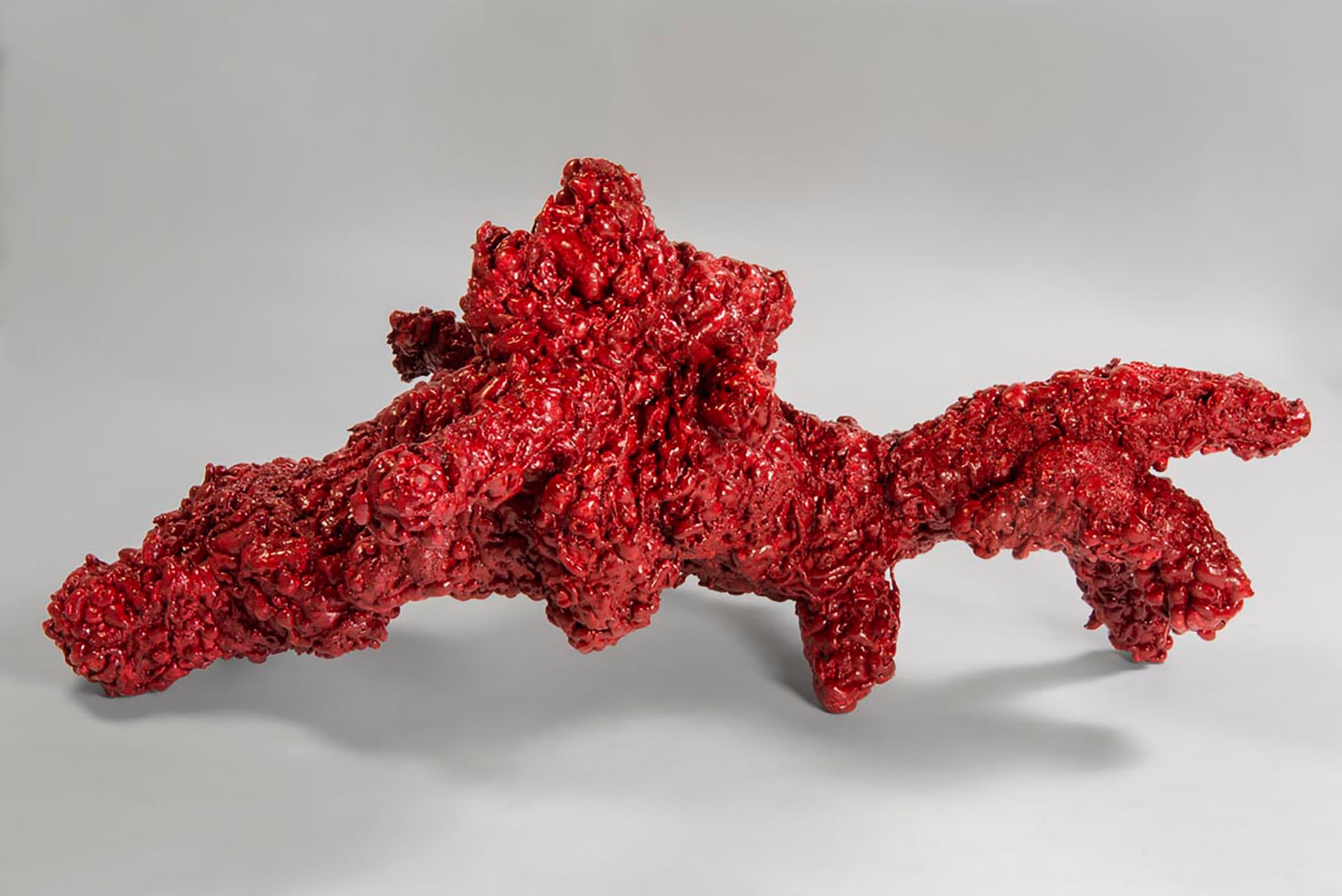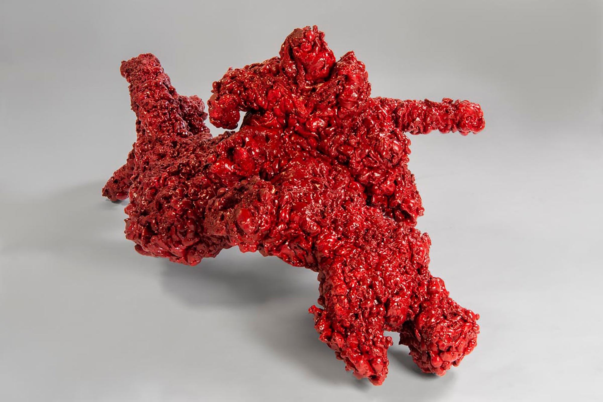 compressed carved foam, spray foam, red paint
