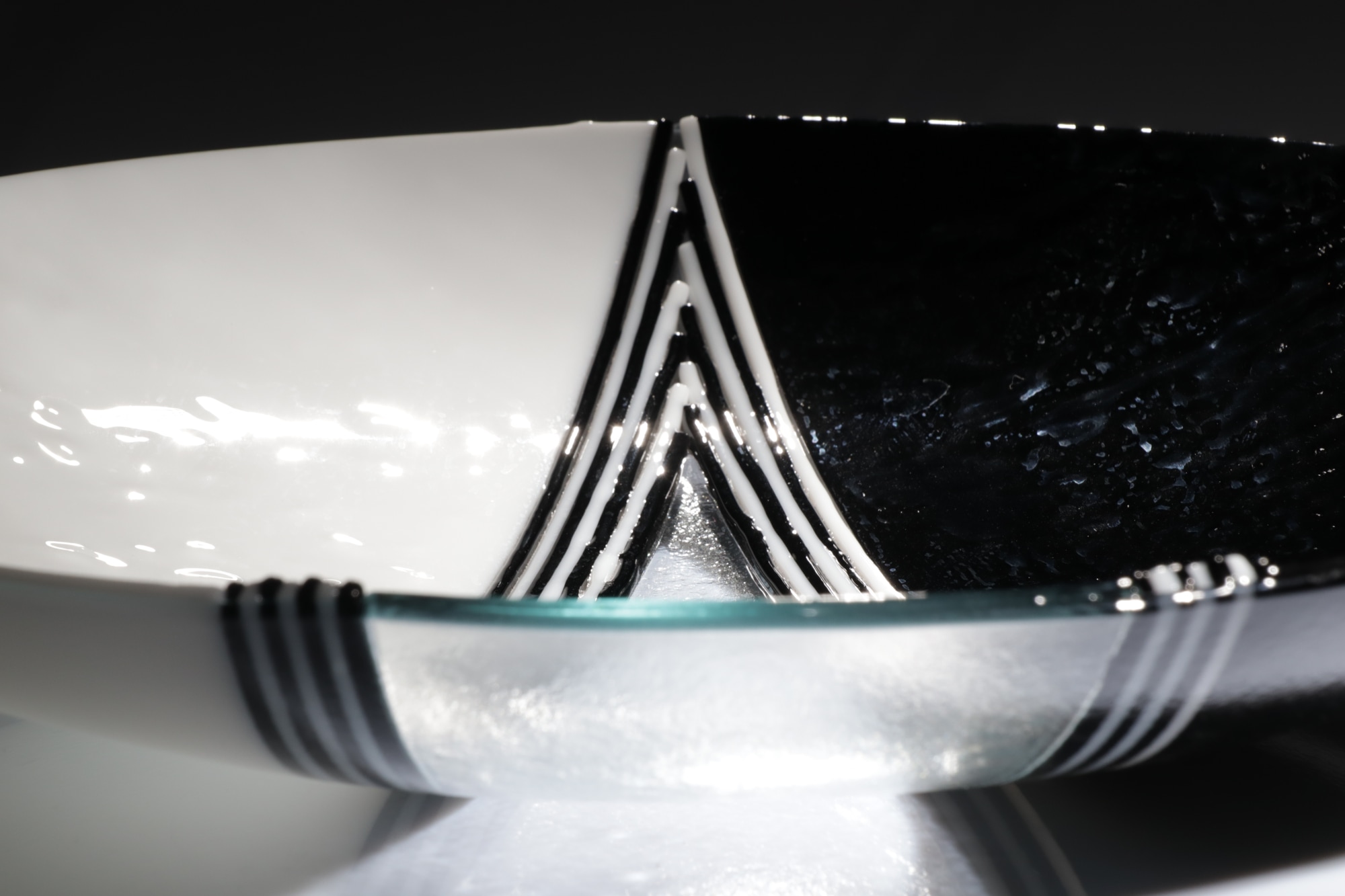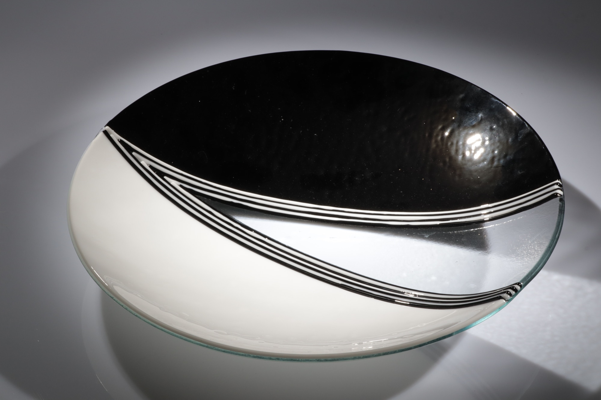 Balance - zwart en wit glas met een transparante uitsnede. Doorsnede 40 cm.