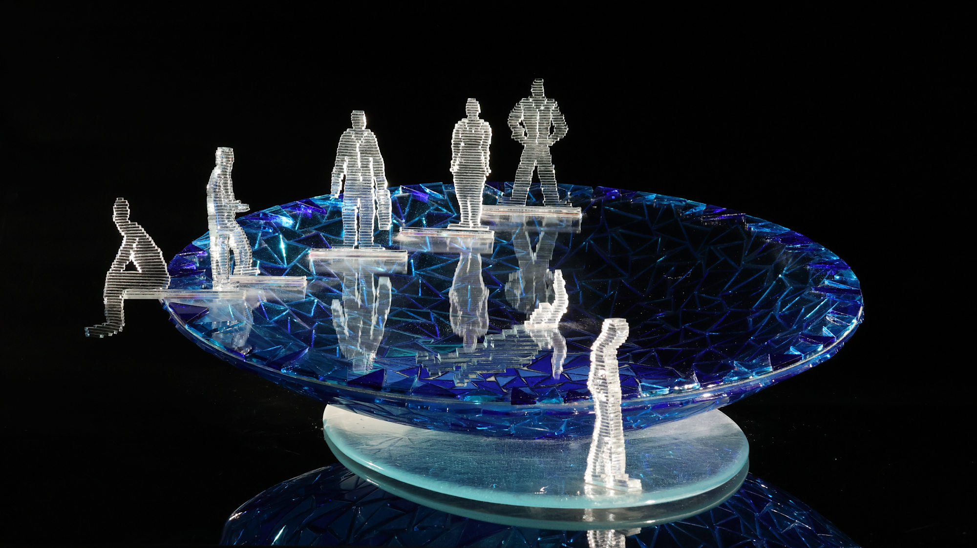 Dit werk is oorspronkelijk gemaakt voor een expositie in de Fundatie met als thema Europa. De schaal, die de basis vormt van het object, symboliseert Europa en de mensfiguren die erop staan en zitten symboliseren (groepen) landen in Europa. Groot-Brittaniƫ loopt weg (dit was vlak voor de Brexit), er zijn landen die leiden, ondersteunen, omhoog klimmen, wegdromend niet echt mee doen en verdrinken (in de in die tijd slechte economische situatie in de middellandse zee-landen).