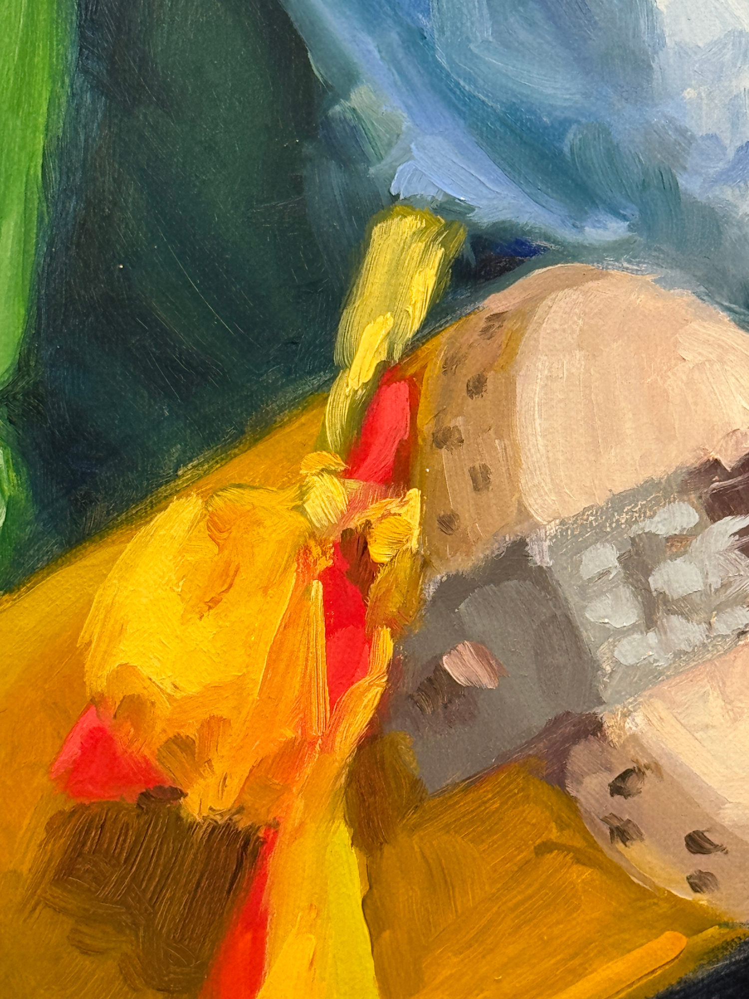 This musician is taking a break from entertaining visitors with traditional music in the Kunming Stone Forest near the city of Kunming, China. The park features interesting geological formations of giant stones jutting up from grassy fields.