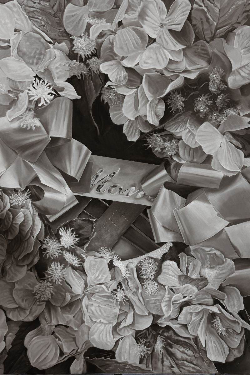 A pink wreath at the donation center invokes many questions, along with a constructed narrative of where it came from? Who will purchase it next, and what anticipatory grief are they experiencing? Two mothers connected through death, via a hand-me-down graveside wreath.
