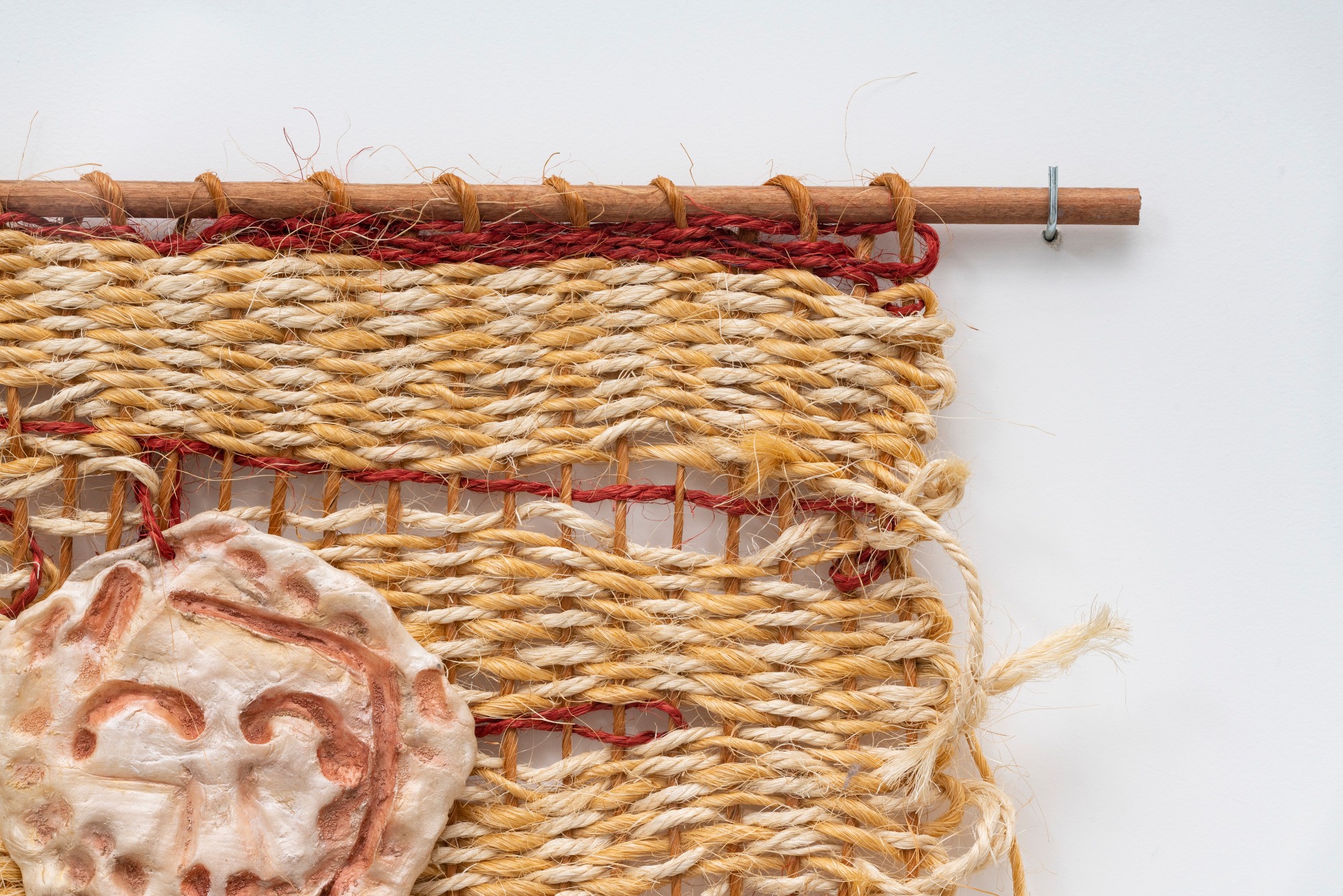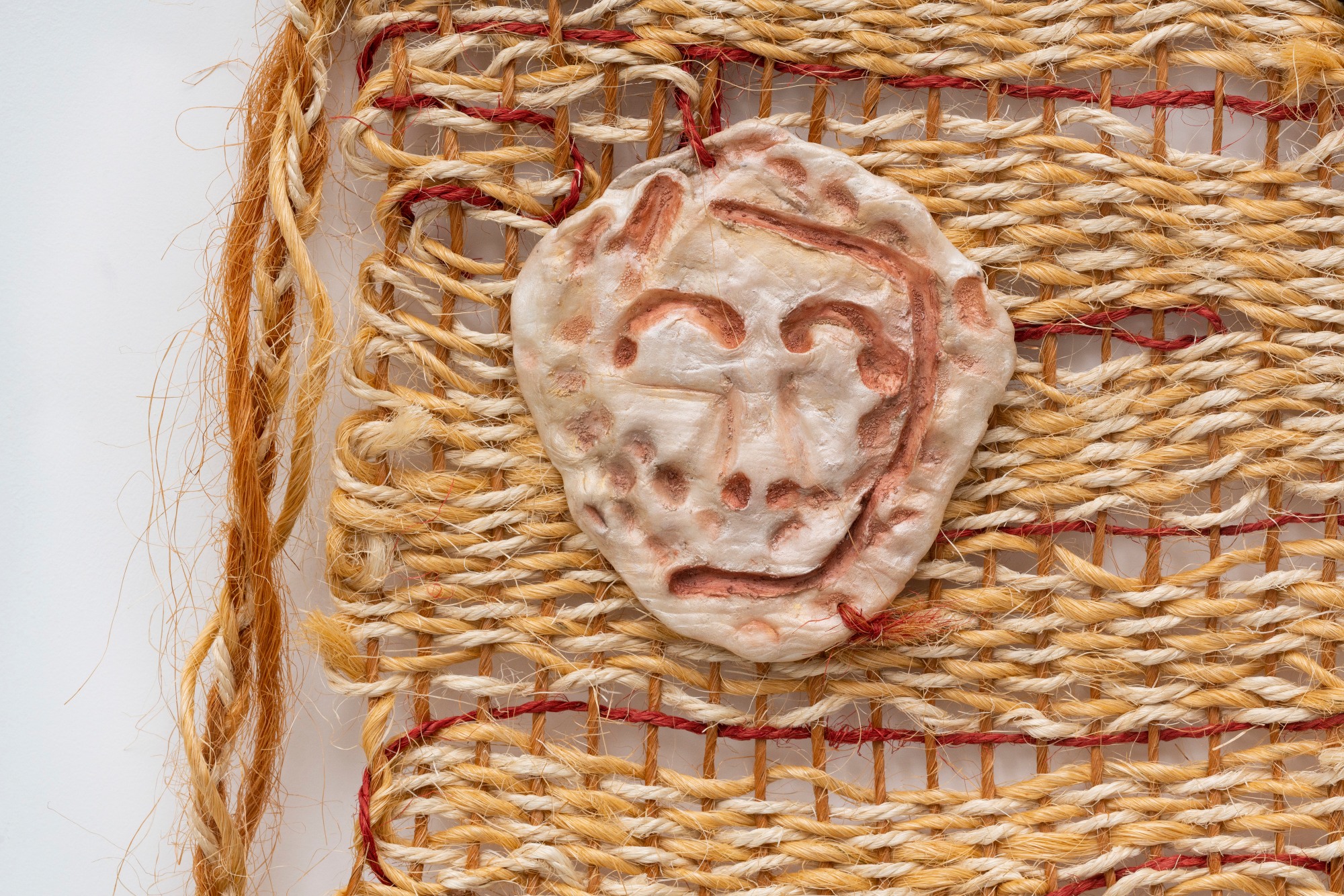 Óleo sobre parcelana fria e trama de sisal [Oil on cold porcelain and sisal weave]