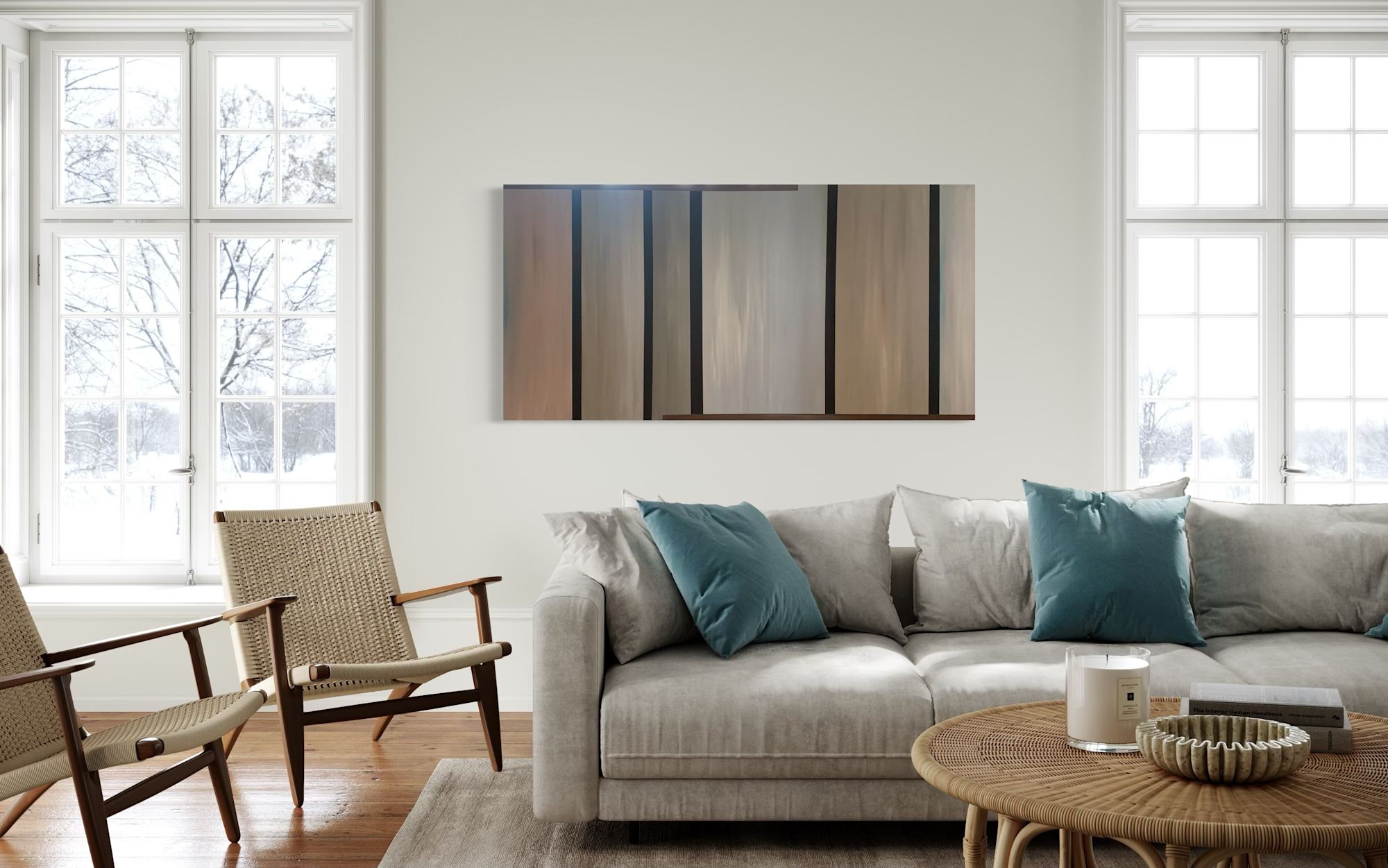 This piece, titled 1, 2, 3 Breathe, began as an entirely different concept. After layering dark tones, I realized that wasn’t what I wanted to share with the world. Instead, I created a painting that radiates calming, grounding energy—perfect for spaces like health centre waiting rooms, where soothing art can help foster a sense of peace and relaxation.