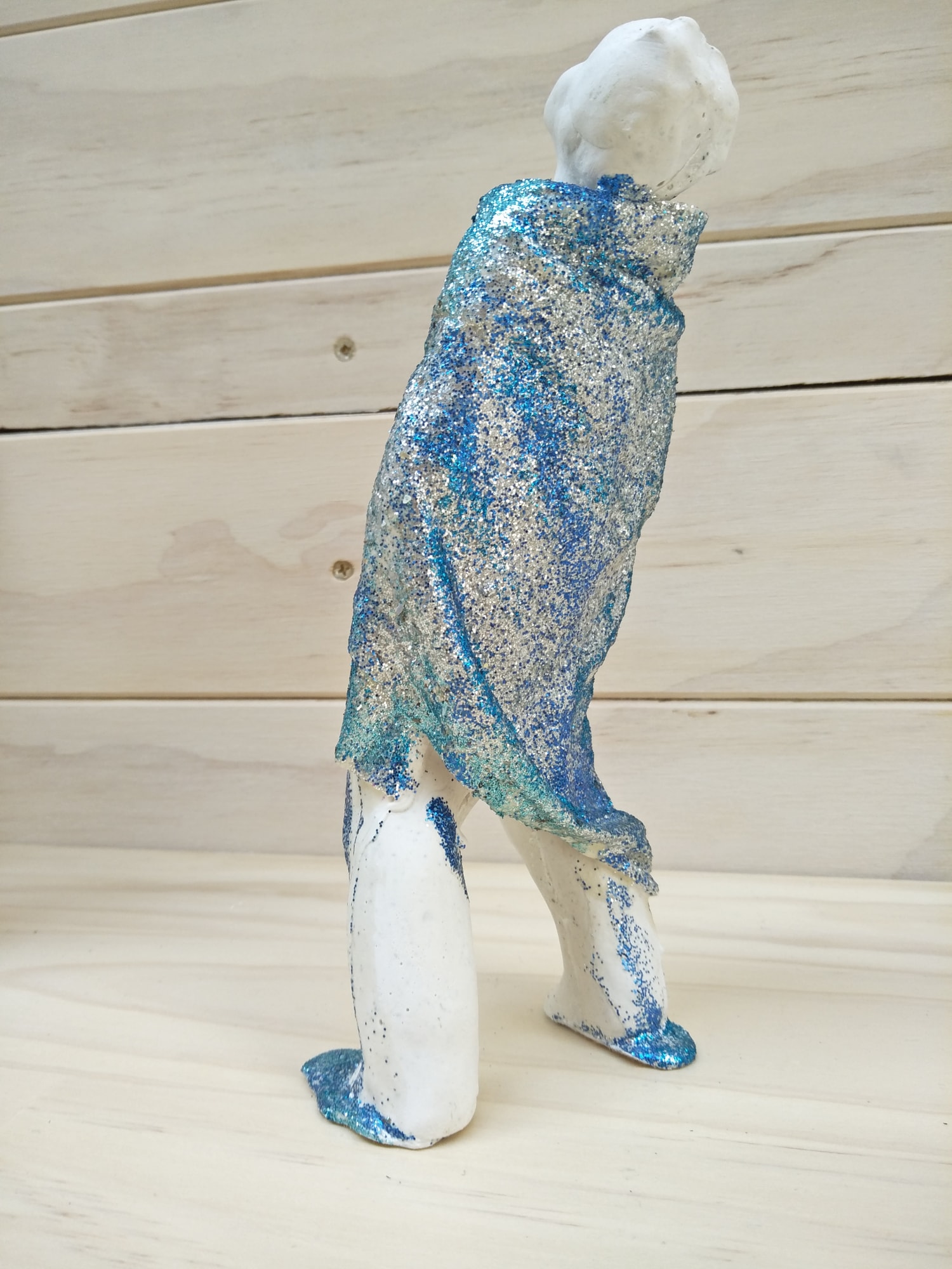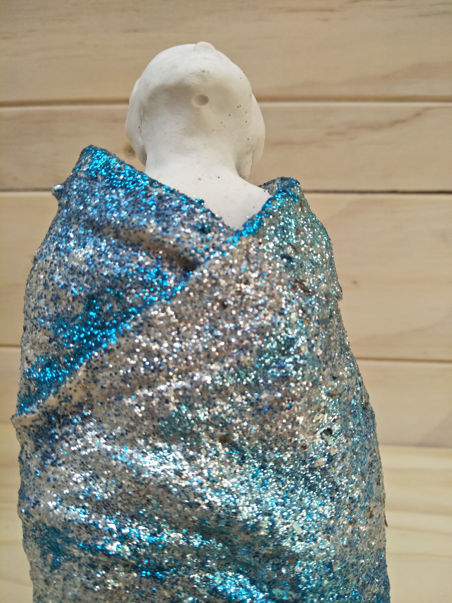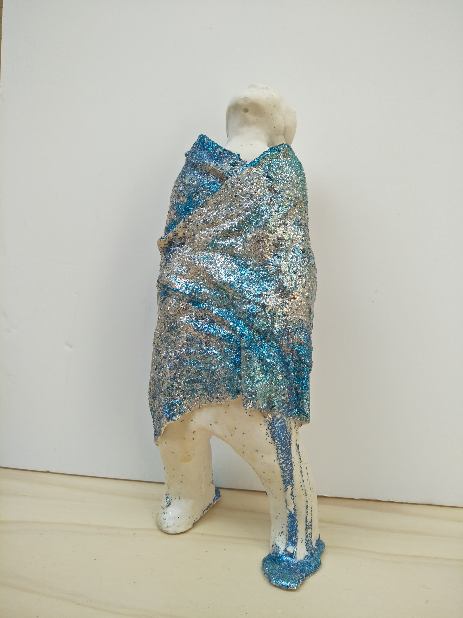 Plaster, textile, glitter
