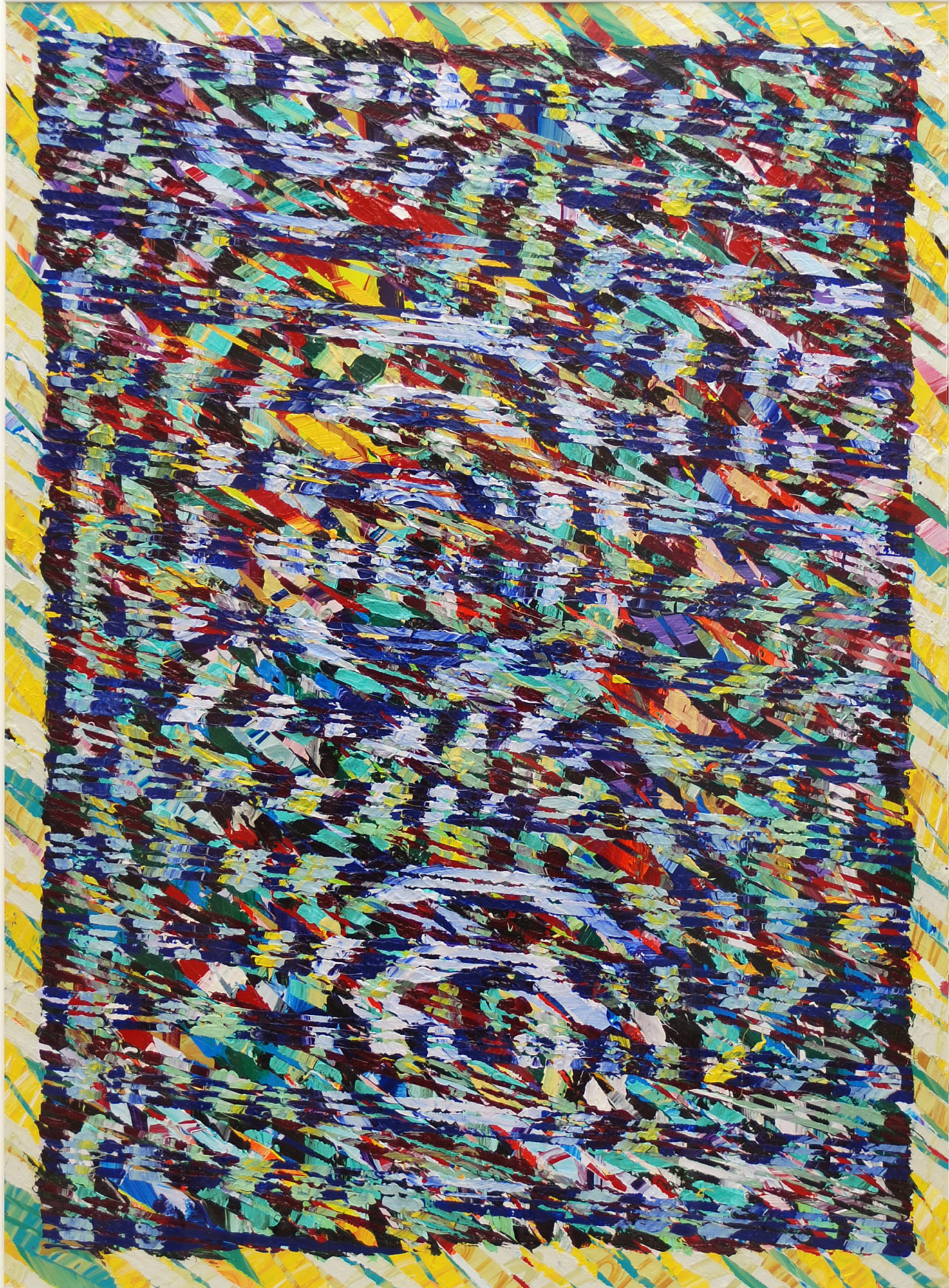 Layering itself, I believe makes up the central metaphor in my work, both literally and figuratively. The process involved in making the paintings is intimately connected to their meaning. The work is about concealing and revealing. It is about the fracturing of color and space, about looking at and into something to extract information and meaning. - Aaron Karp Ray Graham Collection
