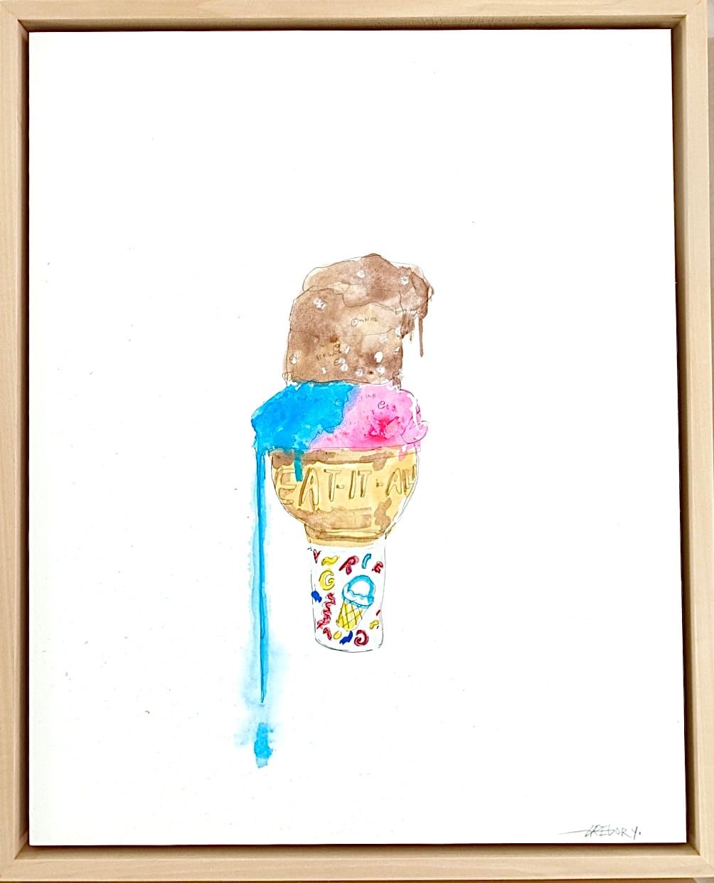 • Acrylic and pencil on 140lb 300g watercolor paper mounted on panel (framed)