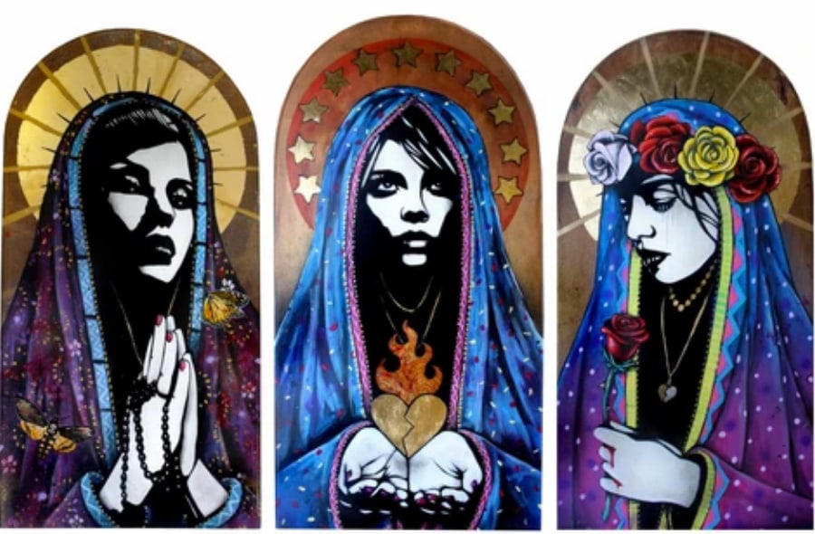 Focusing on the acceptance of different dualities in life, Fables is an introspective exhibition depicting themes of life, death and birth. By embracing the joy of life or overwhelming feeling of loss, Fables is an urban fairytale that reflects life’s journey. The story told is one of beauty and acceptance of light and darkness, joy and sorrow. His beautiful women are female warriors that will always fight and be ready for a new journey that will create a new fairy tale.
