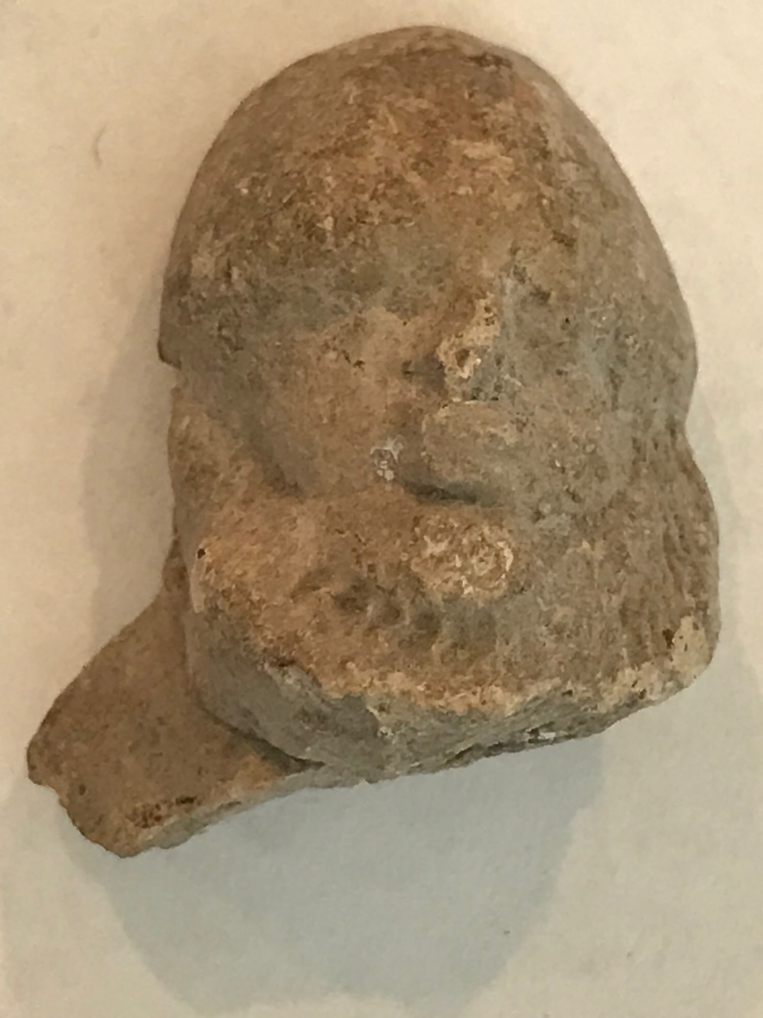 A terracotta Head of a Man with a Beard, circa 1000 BCE, perhaps Canaanite or Hebrew. He may be a depiction of El, the Canaanite God, who is usually depicted as bearded.