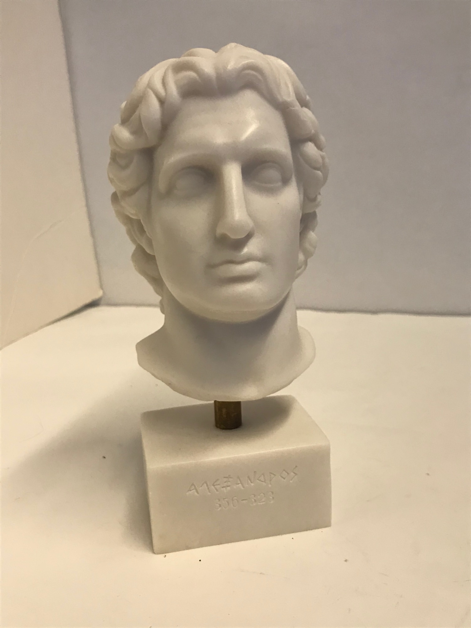 Head of Alexander the Great. Born in 356 BC, Alexander succeeded his father, Philip II king of Macedonia, to the throne at the age of twenty. He spent most of his ruling years on an unprecedented military campaign through Asia and northeast Africa. He died in 323. His legacy includes the spread of different cultures leading to such influences as Greco-Buddhism and Hellenistic Judaism.