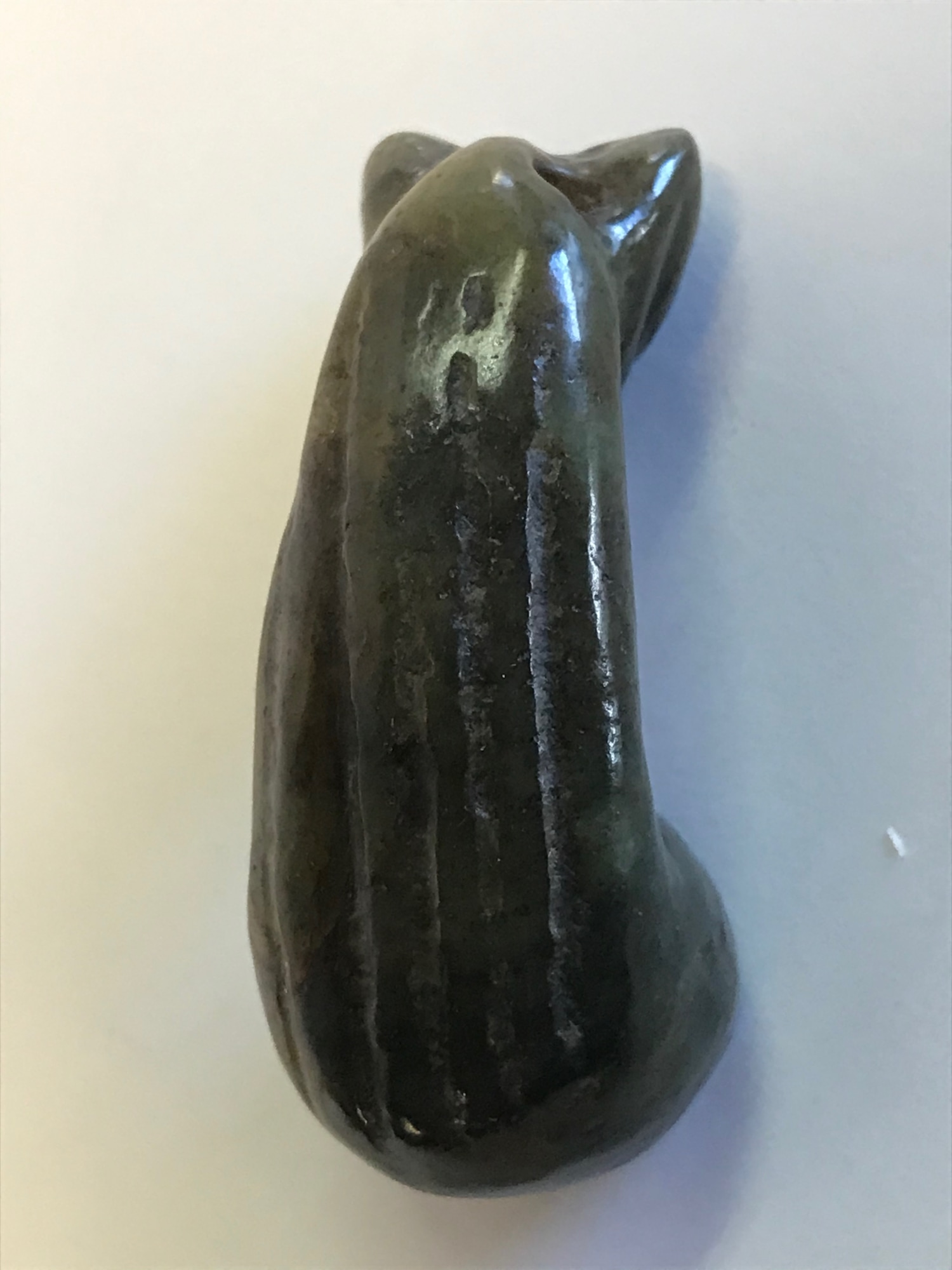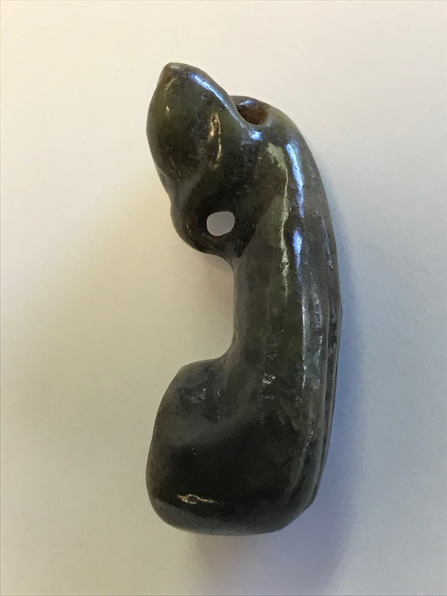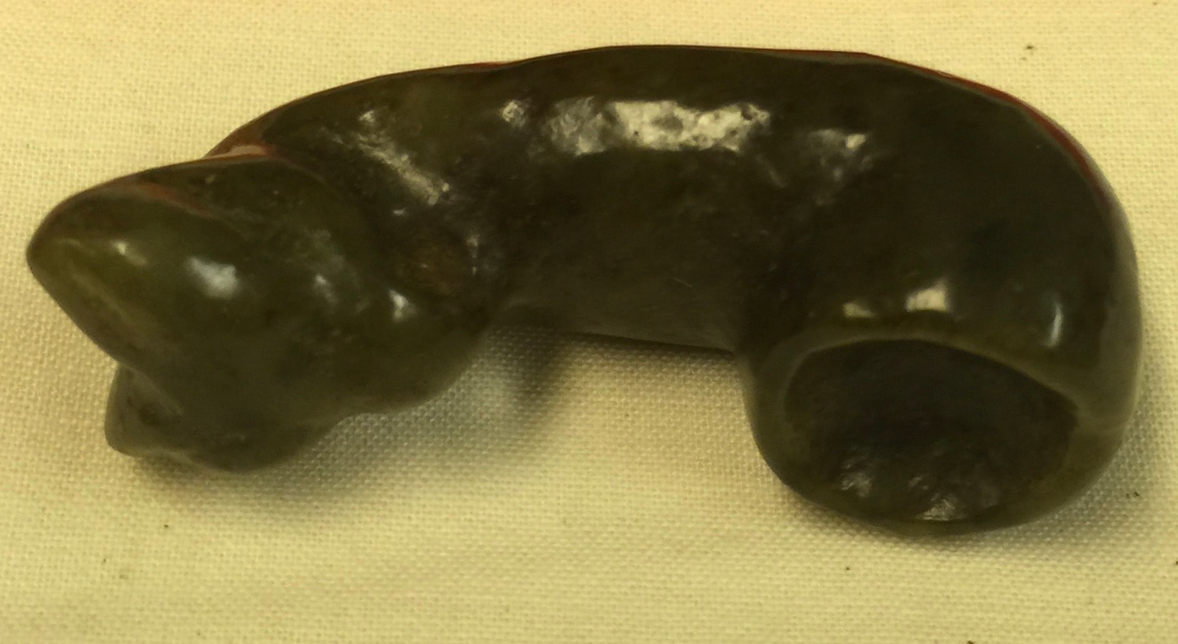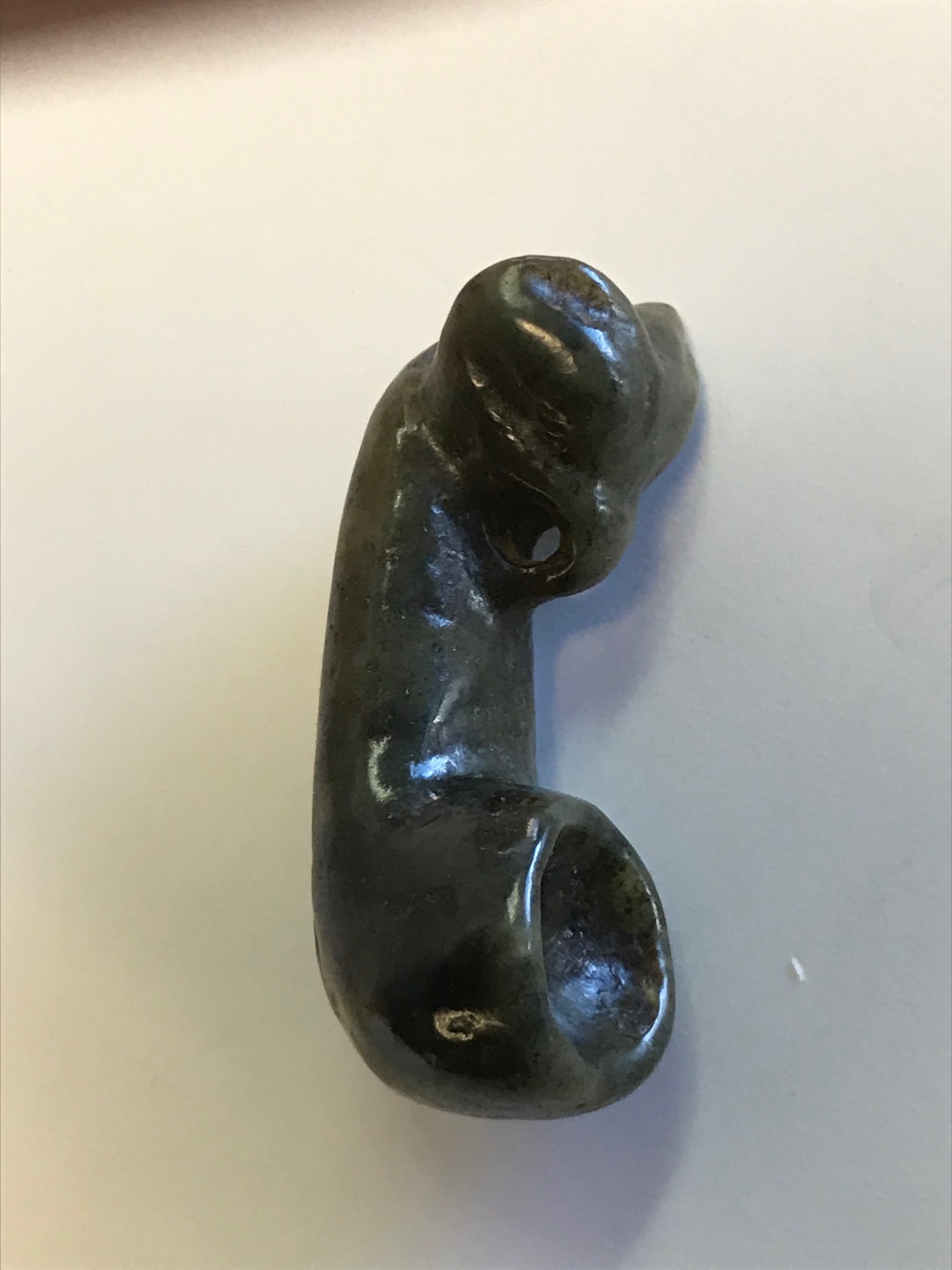 Elephant shaped head; figure appears to be reclining bowl at bottom of figure.