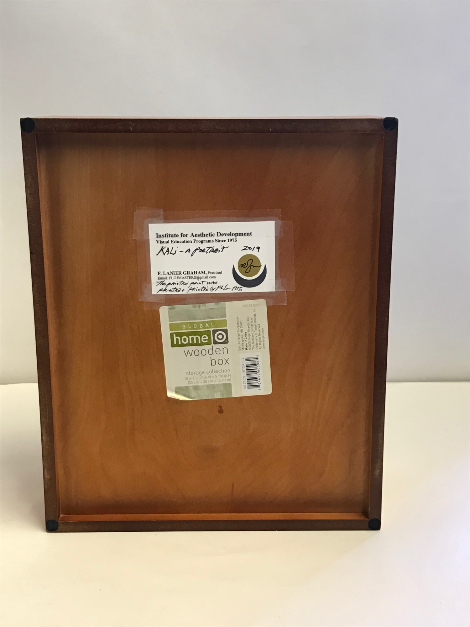 The print at the background of the piece was painted by F. Lanier Graham in 1975. the medium is paper and ink on white paper with a black paper backing.