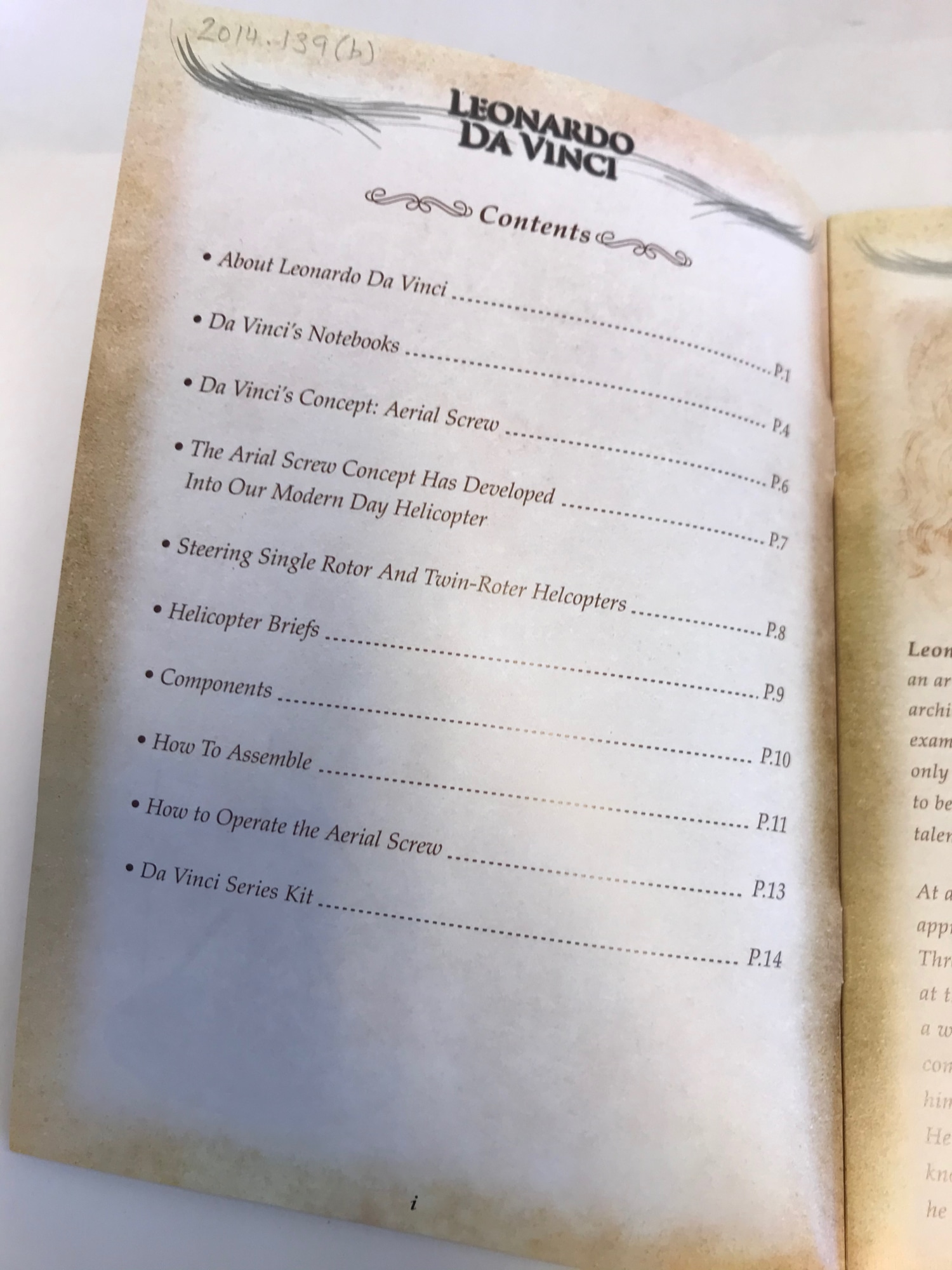 Leonardo da Vinci, Aerial Screw Instruction Booklet