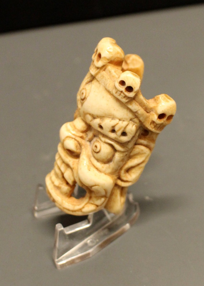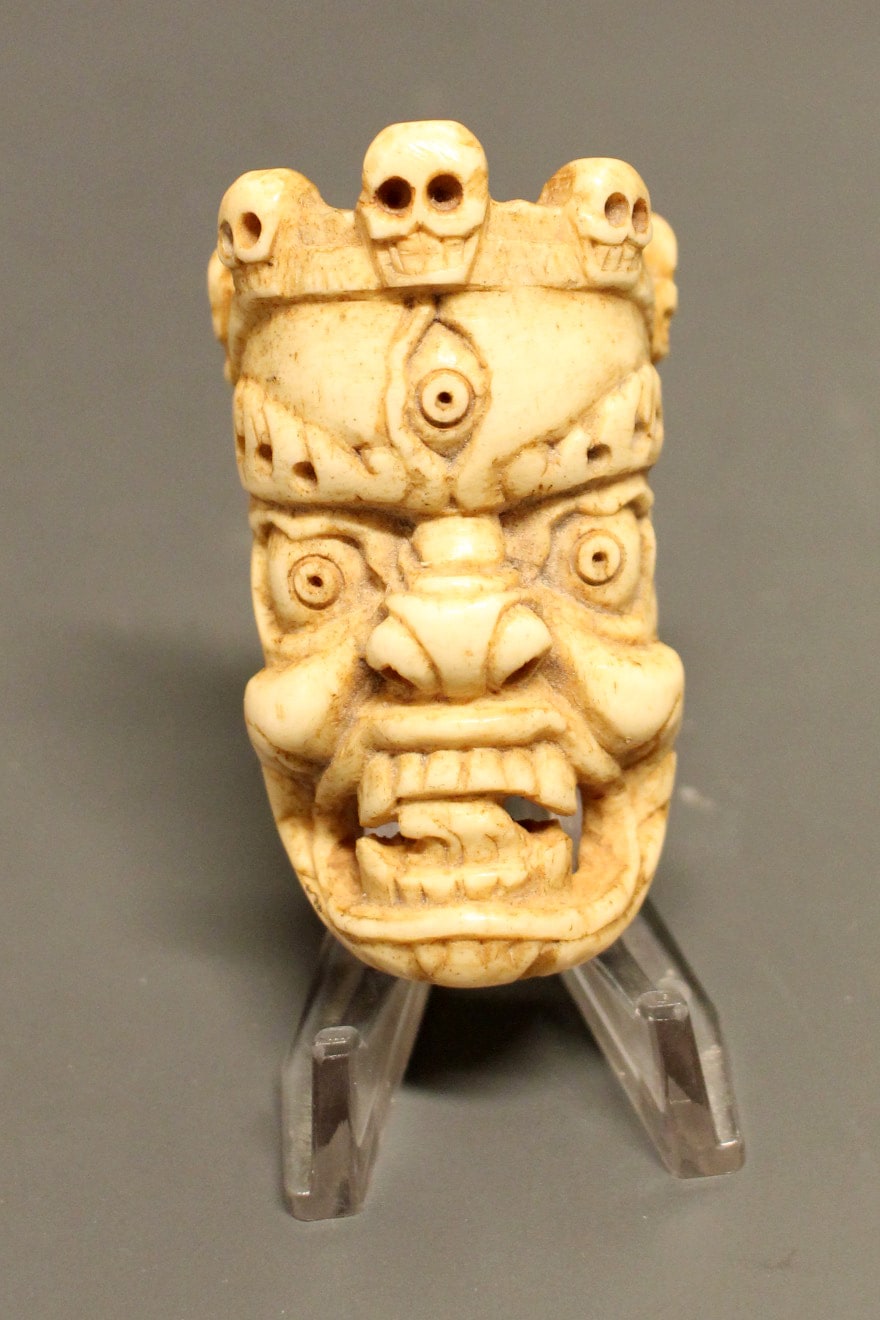 Mahakala head with stand. Mahakala plays multiple roles in Hinduism and Buddhism but in Mahayana Buddhism is a protector or guardian deity.