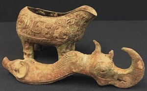 A reproduction of a bronze ritual vessel used for wine (zun) in the form of a Rhinoceros.
