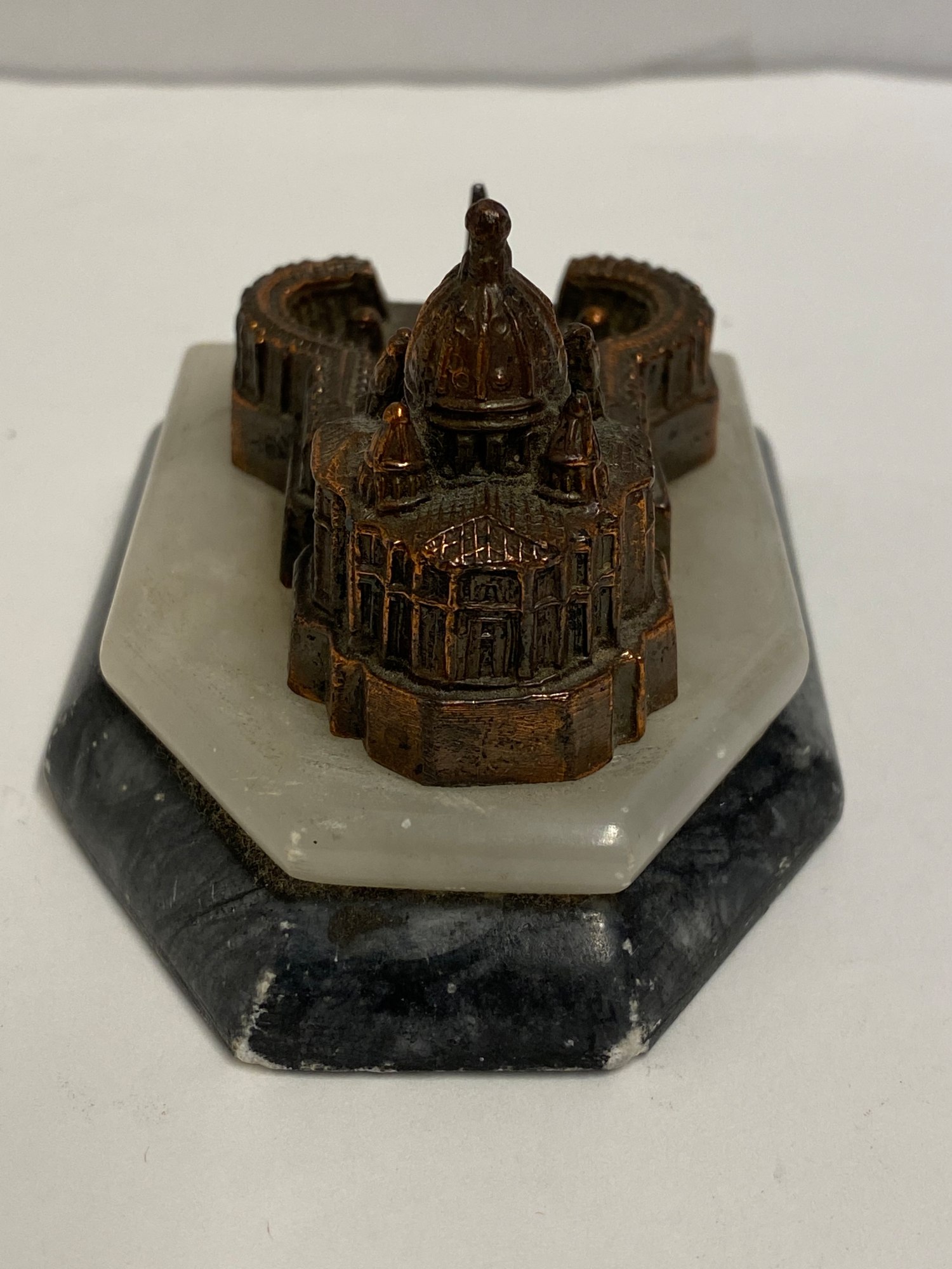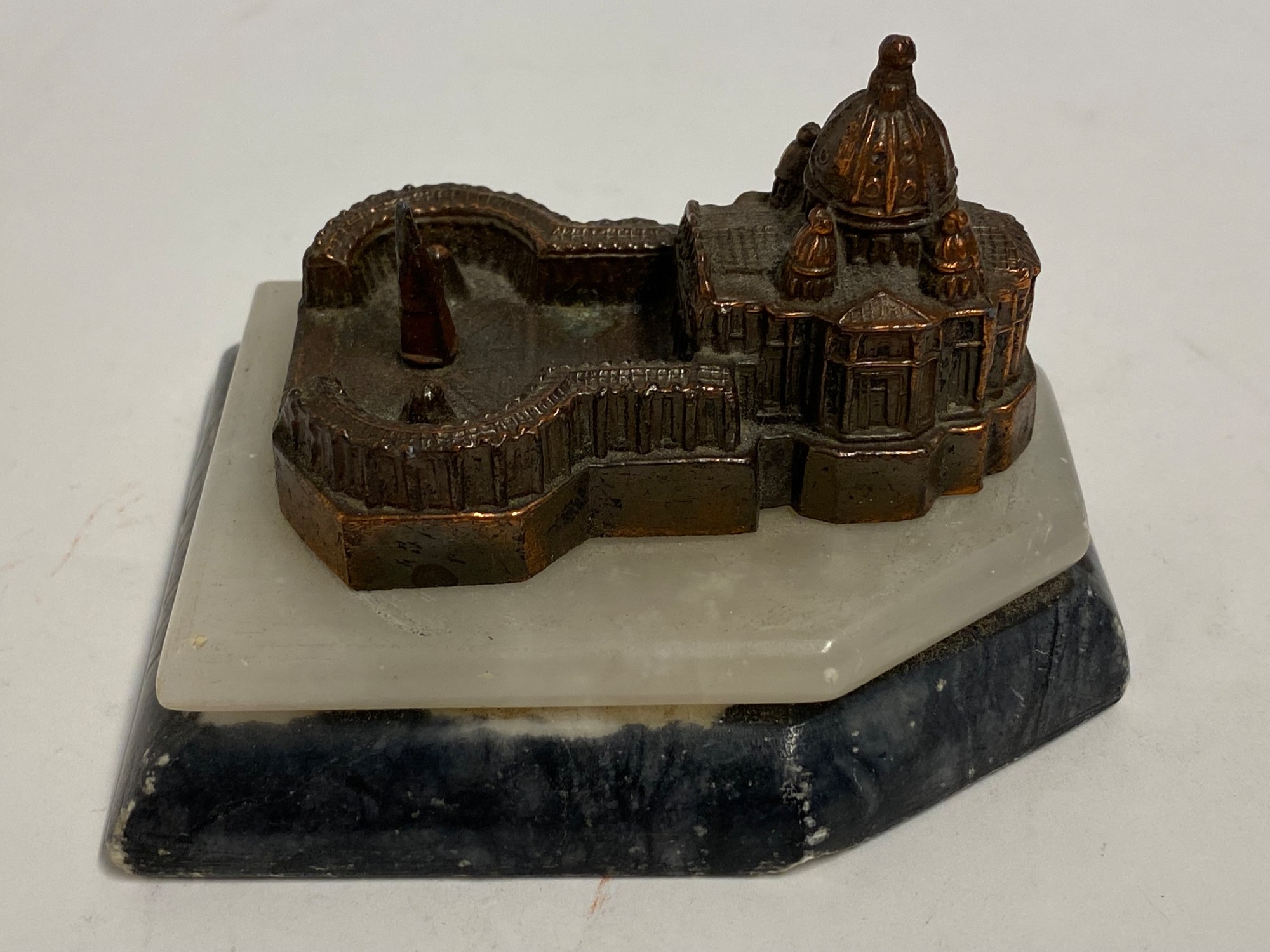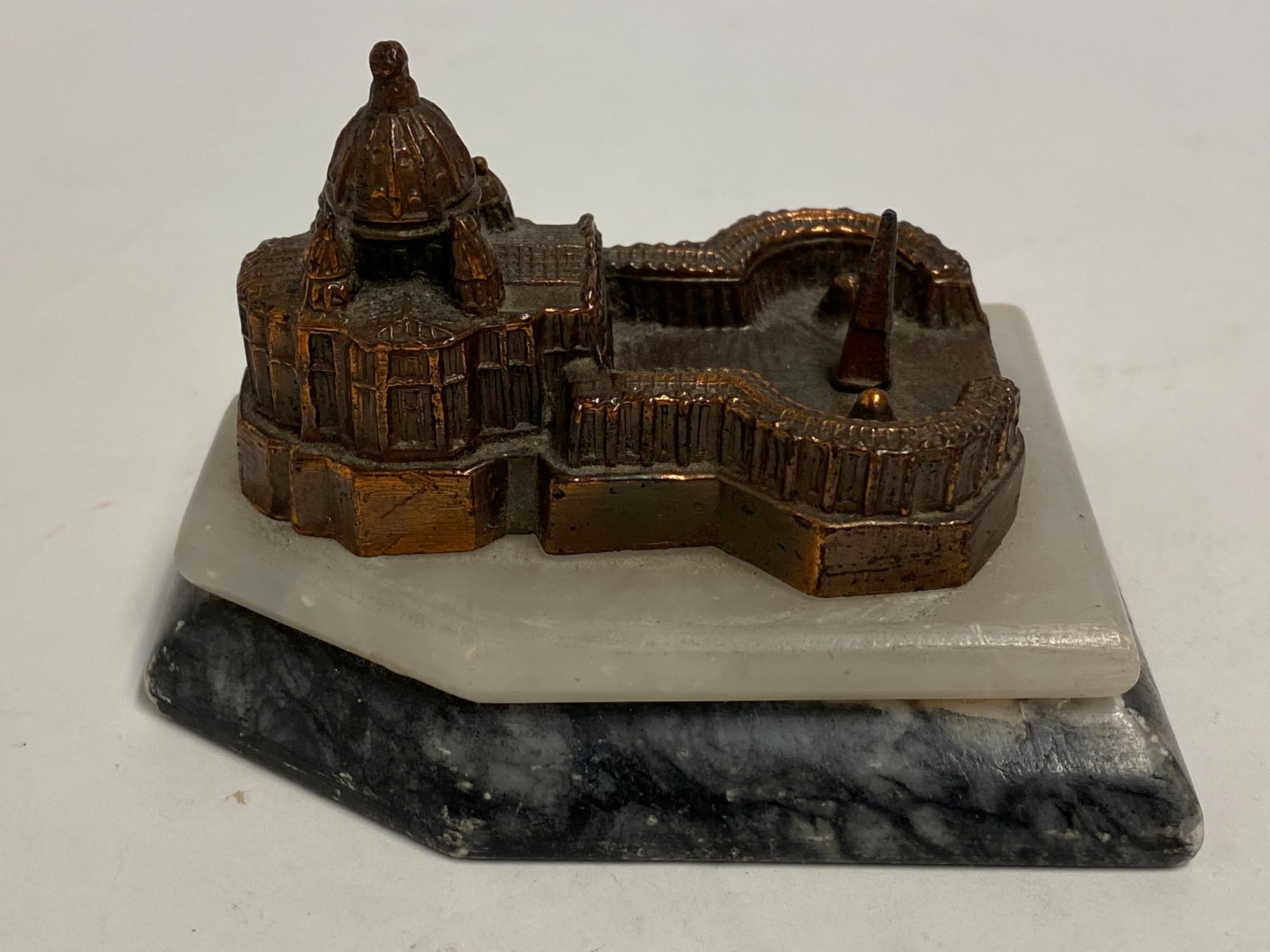 St. Peter's Basilica Diecast Pencil Sharpener. The tradition of die-cast pencil sharpeners in the shapes of various objects (ships, planes, pianos, golf carts, oil rigs, typewriters, etc.) were first produced in Spain (Valencia) in the 1970s, under brand names such as PLAY-ME (smaller versions) and EMB Marti (larger versions). These sharpeners are characterized by their many details and moving parts. They are marked "Made in Spain." In the early 1980s, both the PLAY-ME and EMB Marti company closed, and less expensive versions were mass-produced, initially from factories in Hong Kong and then from other Asian factories. These have prevailed in the market since the 1980s.