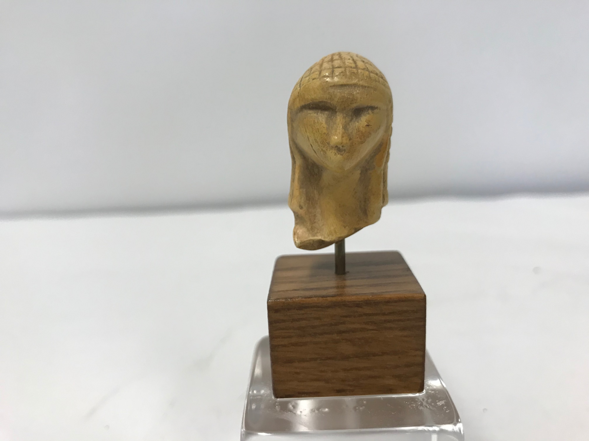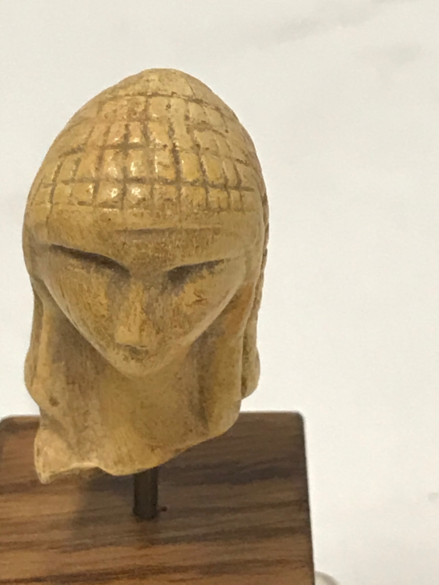 Venus of Brassempouy, a prehistoric figure sculpted from a mammoth tusk. Reproduction. The original is over 25,000 years old and is one of the oldest realistic images of a human face.