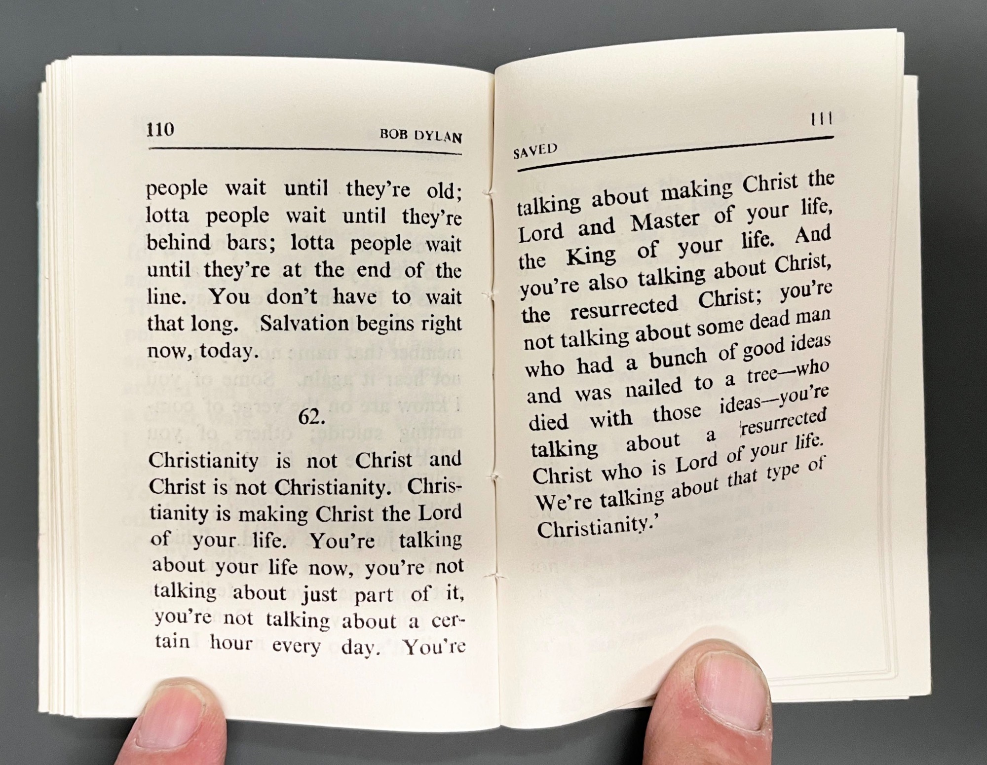 Saved! : the gospel speeches of Bob Dylan ; text edited by Clinton Heylin. Madras ; New York : Hanuman Books, 1990.