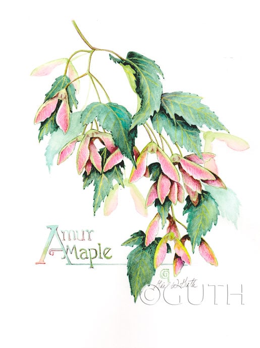 Watercolor of invasive species Amur Maple