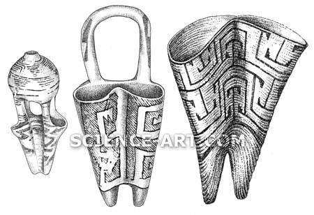 Redraw of old artifact illustrations for publication. Pen and ink.