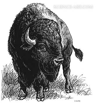 Black-and-white scratchboard illustration ofNorth American bison created for cover of zoo monthly publication.