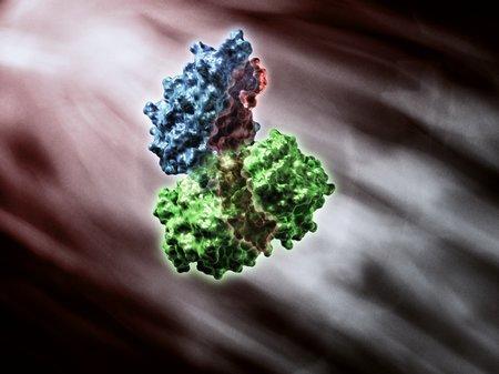 Cholera is an infectious gastroenteritis caused by enterotoxin-producing strains of the bacterium Vibrio cholerae. Vibrio cholerae is a Gram-negative bacterium that produces cholera toxin. The cholera toxin is a protein complex made up of six protein subunits: a single copy of the A subunit (blue and red in the image), and five copies of the B subunit (shown in green). The five B subunits form a five-membered ring which binds to the surface of the intestinal epithelium. The A subunit has two important segments. The A1 portion of the chain (CTA1, blue) is a globular enzyme payload that ADP-ribosylates G proteins, while the A2 chain (CTA2, red) forms an extended alpha helix which seats snugly in the central pore of the B subunit ring. The action of the A subunit leads to secretion of chloride and water into the lumen of the intestine resulting in rapid dehydration. In its most severe forms, cholera is one of the most rapidly fatal illnesses known.
