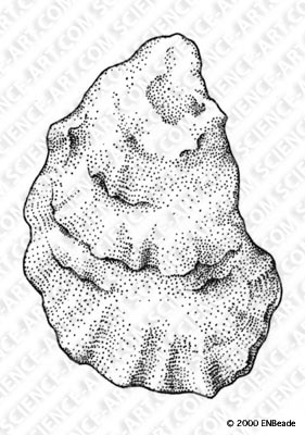 This is a pen and ink (stipple) drawing on plate bristol, of a common oyster shell.