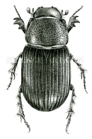 Graphite illustration of the Colorado dung beetle. Part of a larger panel showing the prairie dog community, its ecosystem and ecology.