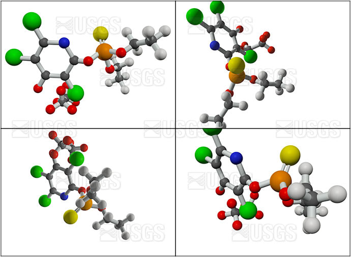 I created Endosulfan and chlorpyrifos pesticide molecules in modo 3D as elements in the Graphical abstract for G. Garrison's journal article.
