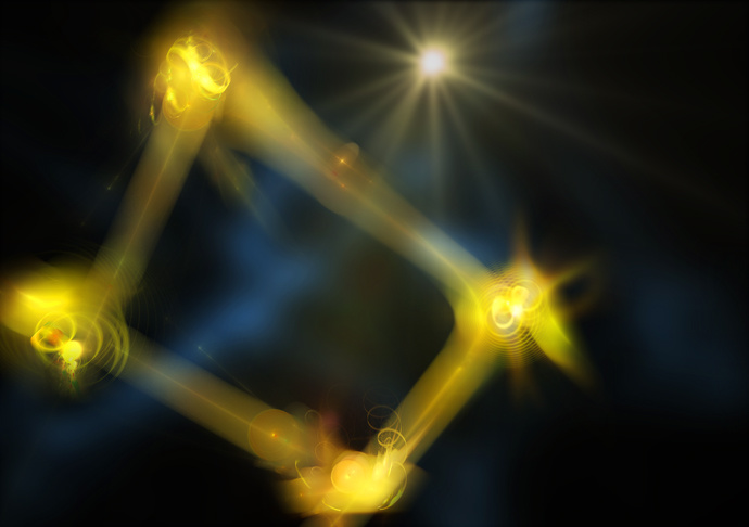 The image shows a cluster of four entangled photons, which form the basis of quantum computing.