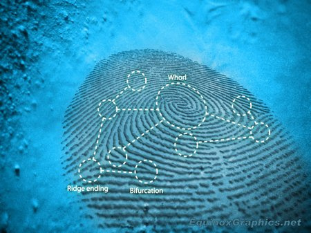3D render of fingerprint residue, highlighting typical patterns for feature identification.