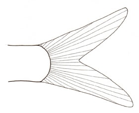 Pen and ink drawing for a taxonomic key of freshwater fishes of Costa Rica. This one shows a forked caudal fin found on a species of Eucinostomus.