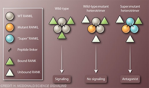 Illustration for a Perspective in Science Signaling titled "Outflanking RANK with a designer antagonist cytokine" [Sci. Signaling 7, pe20 (2014). doi: 10.1126/scisignal.2005674].
