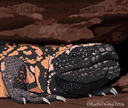 Heloderma suspectum in rocky crevice.