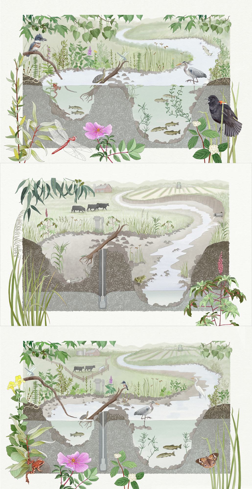 Commissioned by Creek Lands Conservation in Arroyo Grande, CA, these illustrations depict the groundwater/surface water relationship and how varying levels of usage and management affect the surrounding habitat.