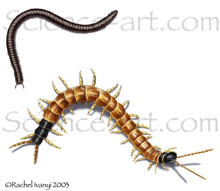 Desert millipede (Orthoperus ornatus), and giant desert centipede (Scolopendra heros)