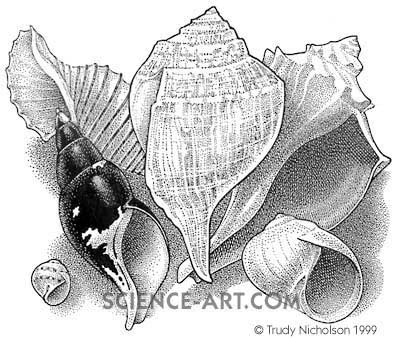 Whelk, Lobed Moon shell, Ten-ridged Whelk,
