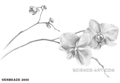 This is a graphite drawing of a phalaenopsis orchid, also known as a moth orchid.