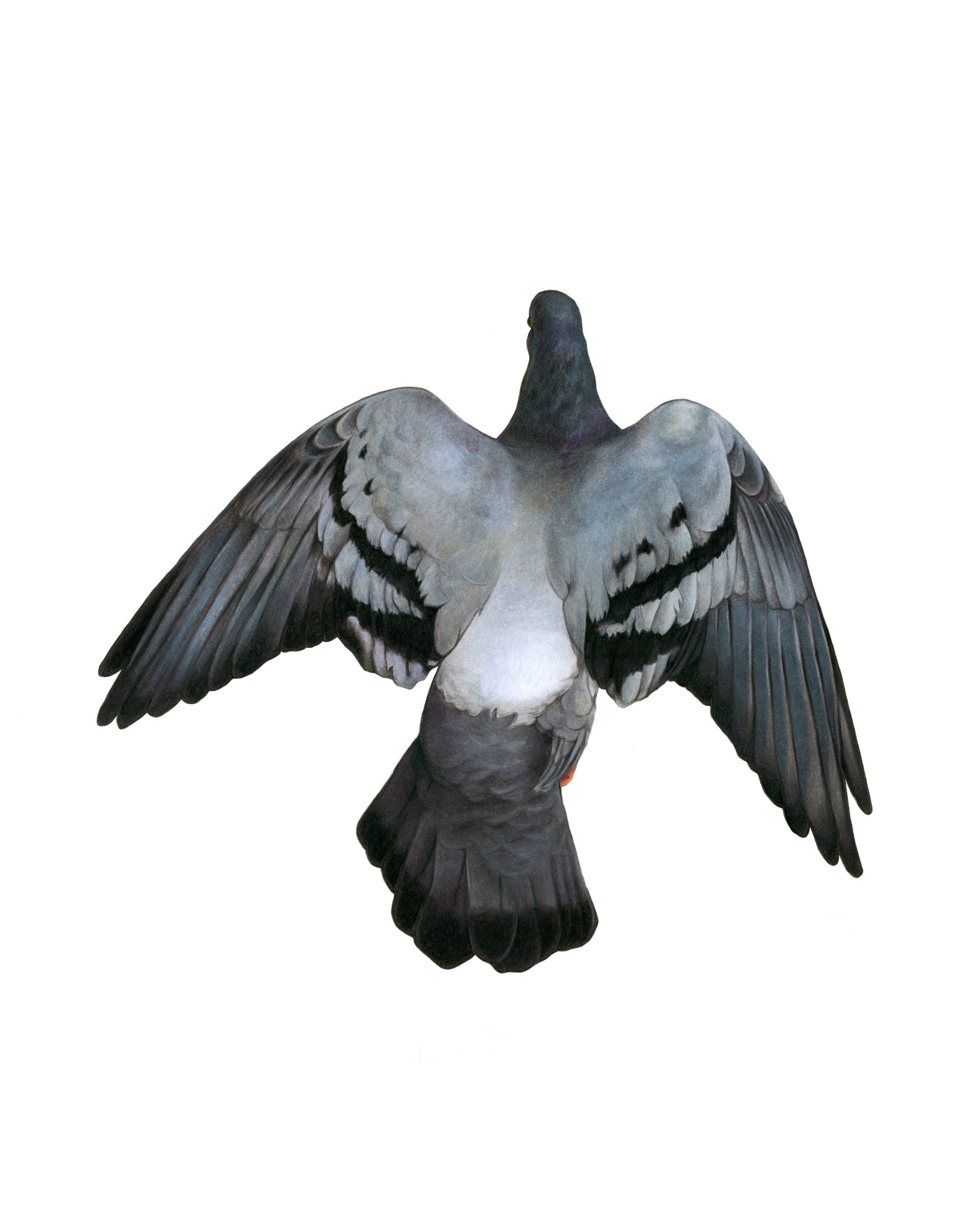 This piece was created to show a dorsal view of feather patterning and color on a pigeon.
