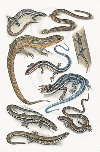 Plate 34. Scincidae, from "A Field Guide to the Reptiles of South-East Asia" by Indraneil Das; New Holland Publishers (UK) Ltd