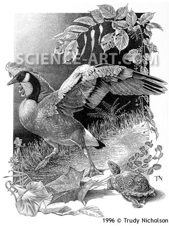 Ink on scratchboard. Based on Artist's observation and photographs.