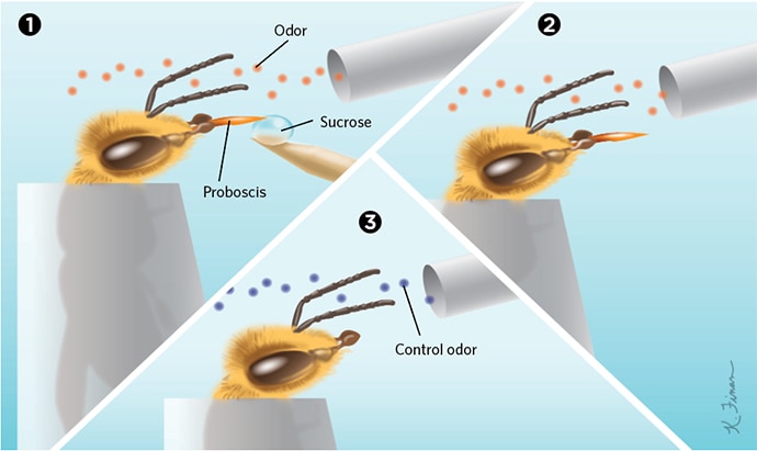 Honeybees can remember reward-associated odors three days after a single learning experience. Published in The Scientist magazine, May 2020.
