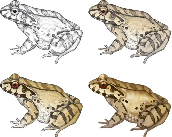This sampler was done to illustrate the rendering options for a herpetology textbook.