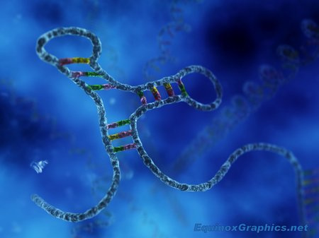 Illustration of a 3D RNA interferase strand (RNAi), showing the folded structure