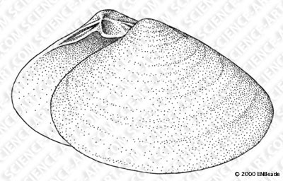 This is a pen and ink (stipple) drawing on plate bristol. The subject is a Surf Clam shell.