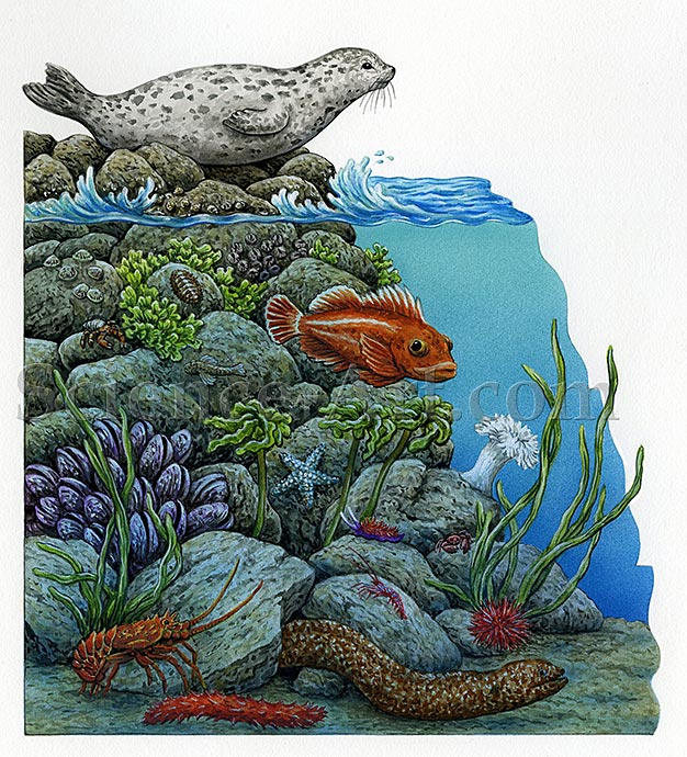 Marine life found in a Pacific tidal zone.