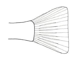 Pen and ink drawing for a taxonomic key of freshwater fishes of Costa Rica. This one shows a truncated caudal fin on Pomadasys sp.