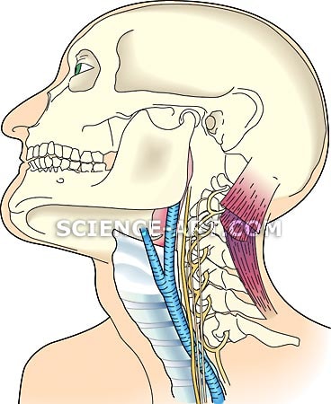 Nine images created for a military self-defense book to illustrate human physiology, typical attack injuries, and how to avoid them. This image, developed in Adobe Illustrator, emphasizes the vagus nerve and its location in relationship to the spine.
