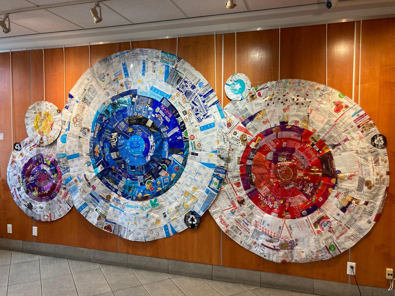 Consider this: every single piece of plastic ever made is still on this planet somewhere today, save the estimated 11% that has been incinerated with municipal waste. We are now facing almost 75 years of plastic production and every year we pump new plastic into the world. Induced Demand is a fine art infographic designed to show how the plastic industry is pumping increasing amounts of plastic into the system each year. Each circular quilt represents one year of plastic production globally. The area of the circle is proportional to how much new plastic was manufactured worldwide in a given year—e.g. 50 million metric tons in 1975 vs 451 million metric tons in 2018. The colorful circle inside each data point represents the estimated 40% that was used for packaging (short-hand for single-use plastic). The small black dot associated with each quilt represents the ~8% that was recycled.